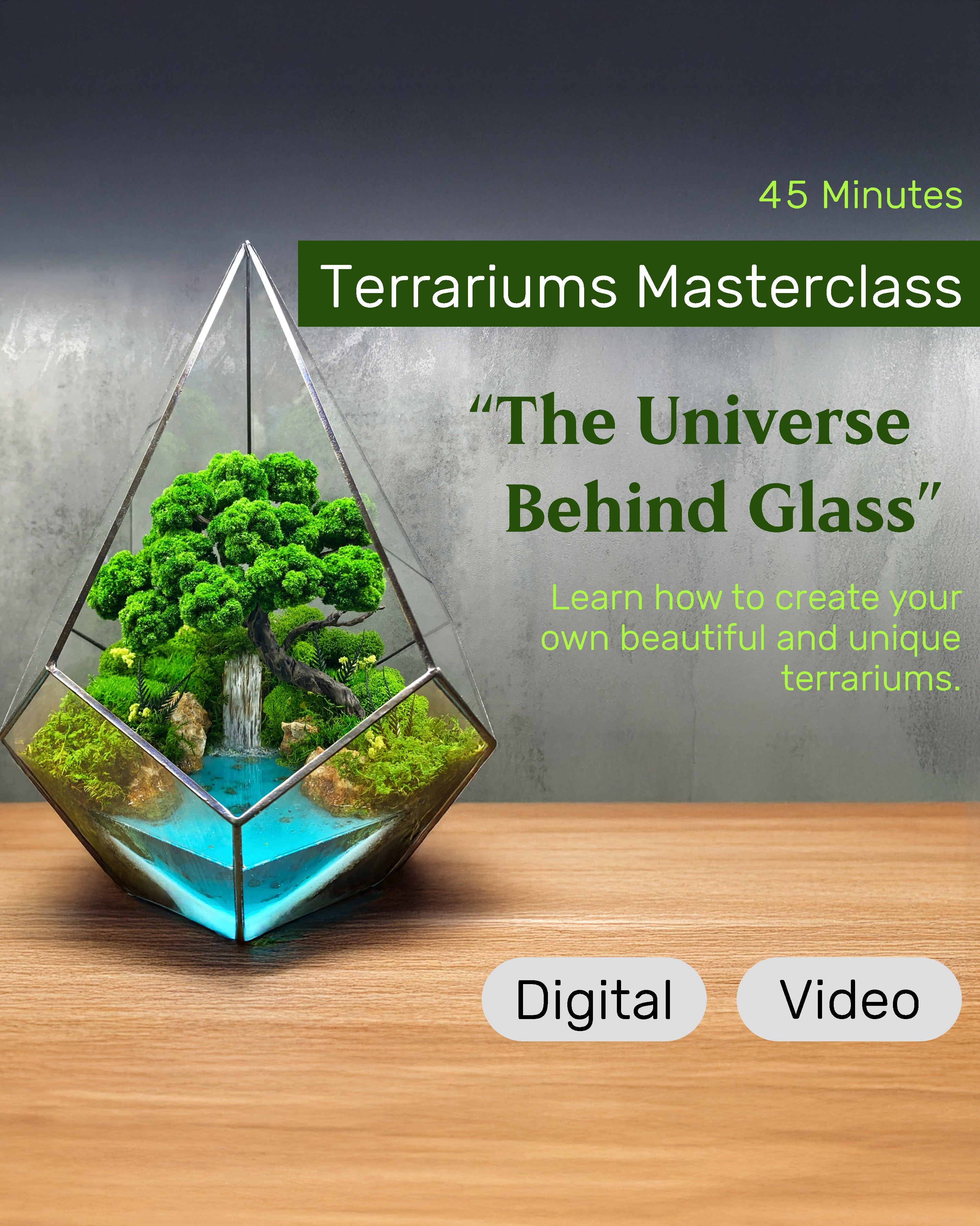 ONLINE COURSE: DIY Terrarium Making — Preserved Moss Art, 45 min Digital Product