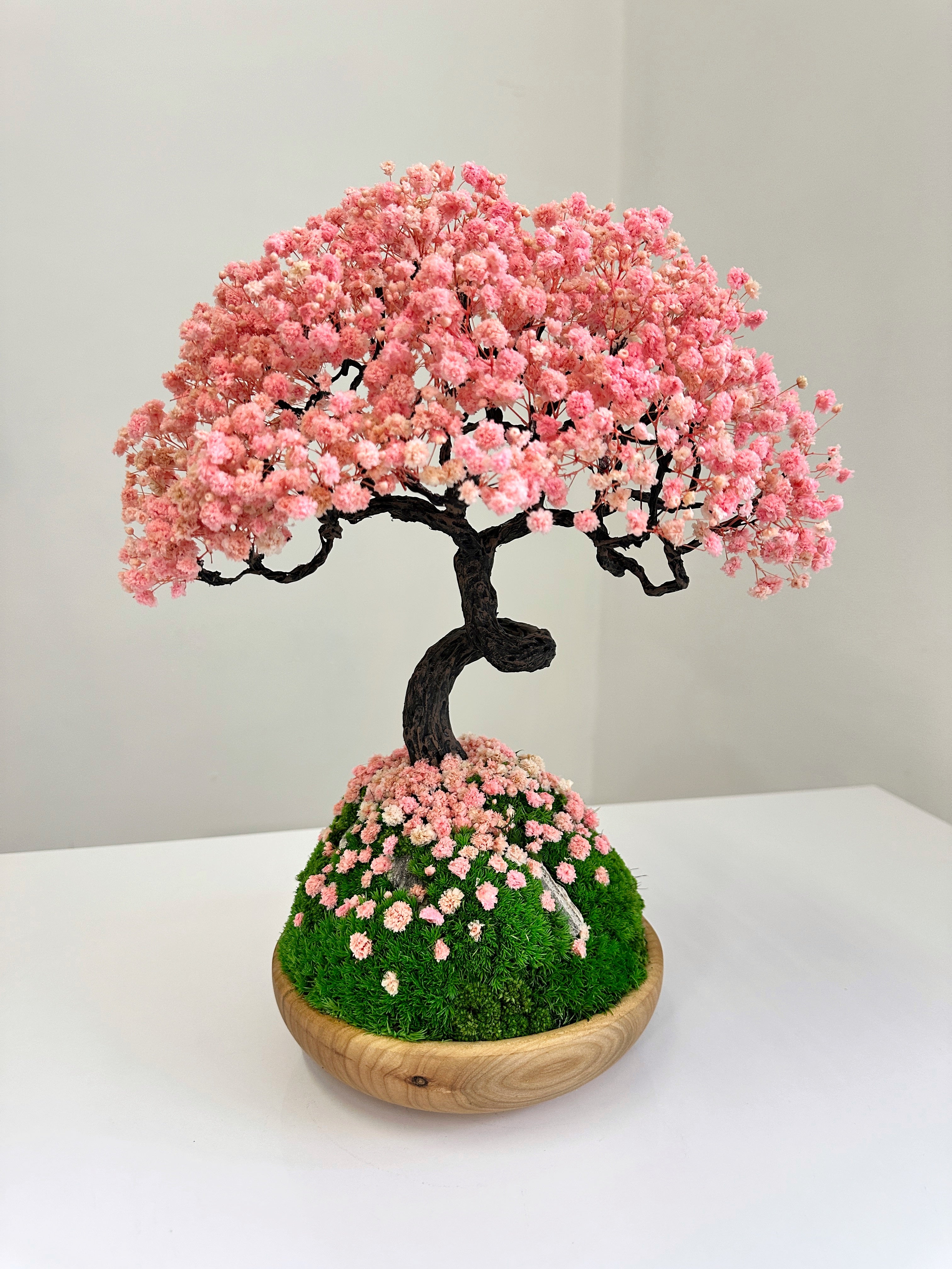 Preserved bonsai tree sakura style made of stabilized plants and flowers