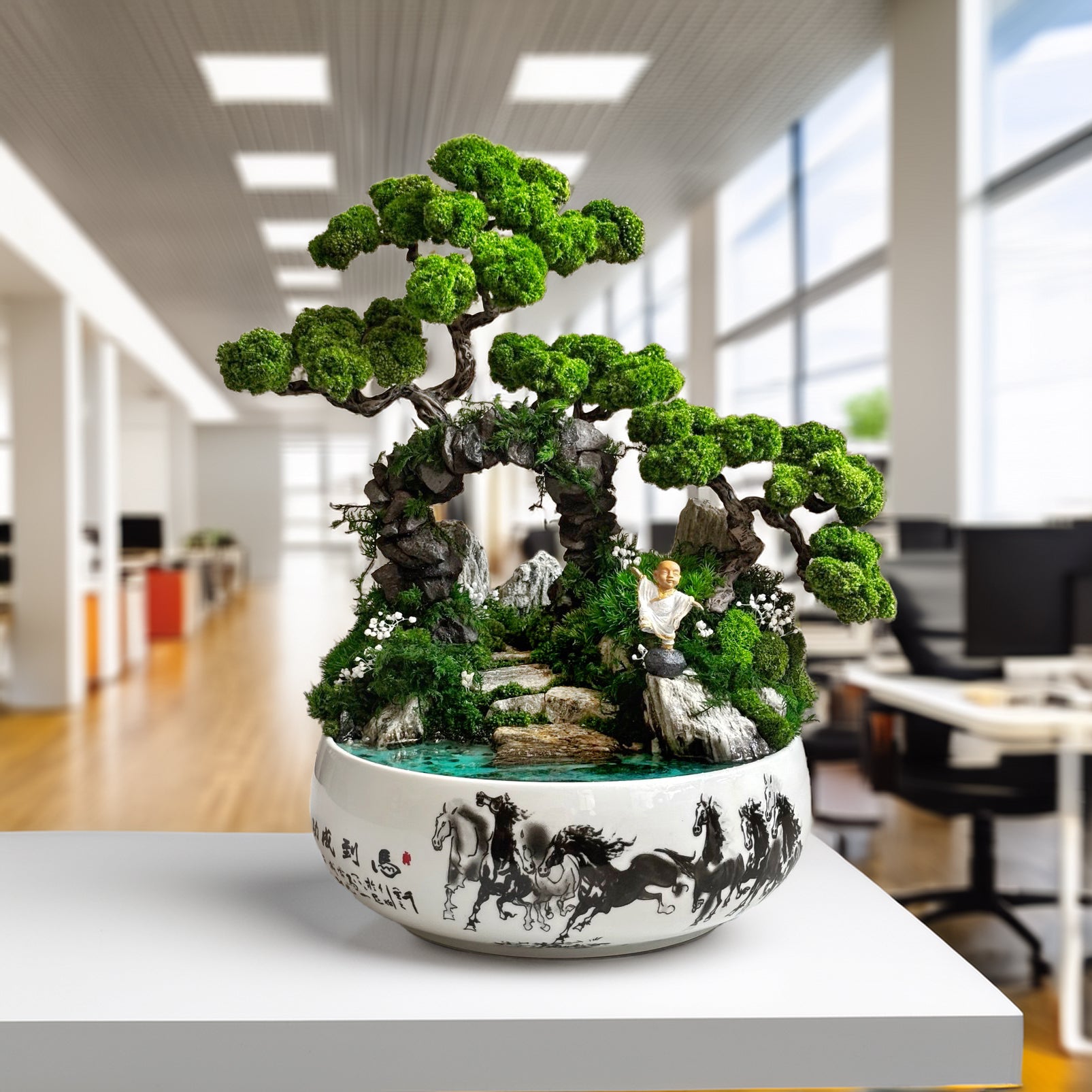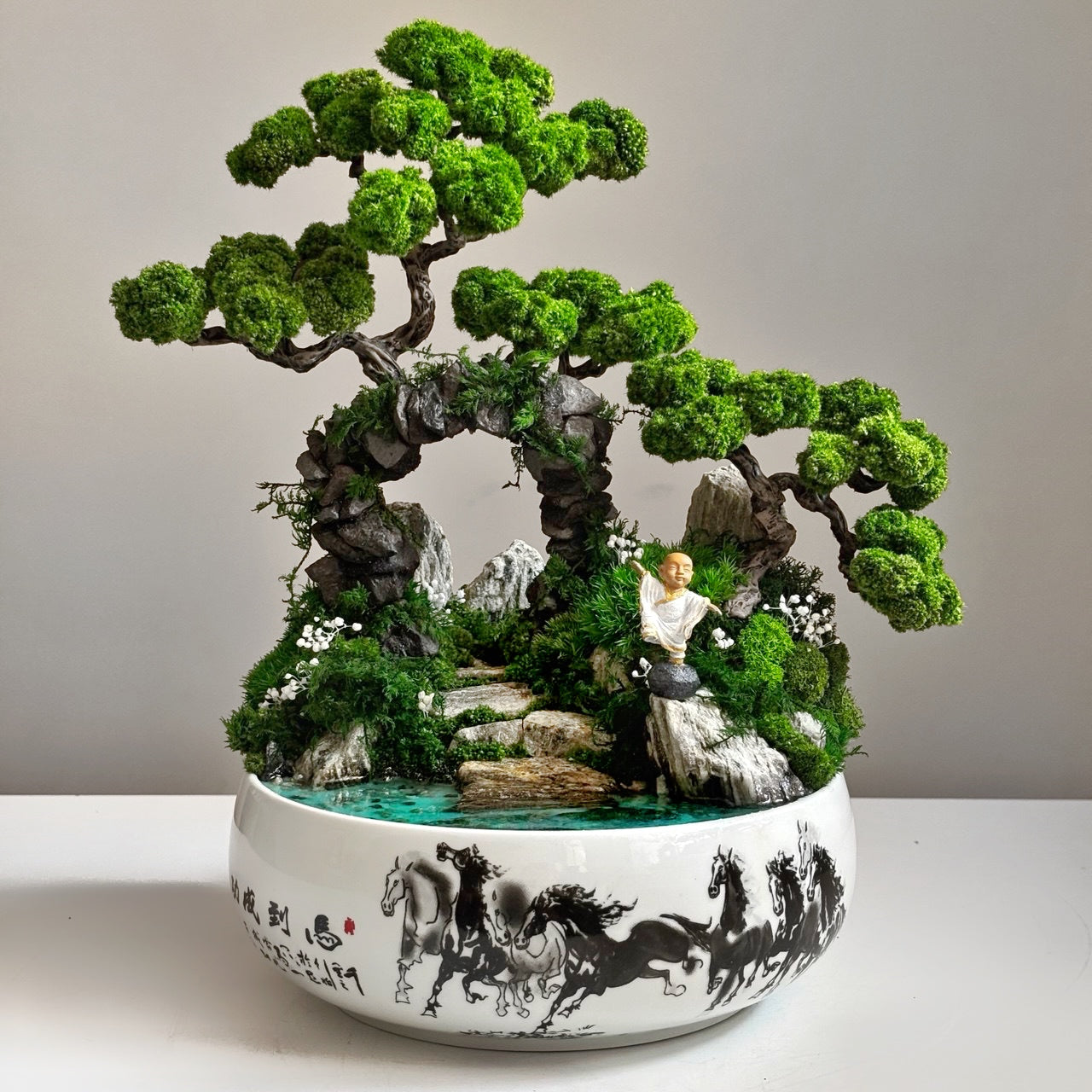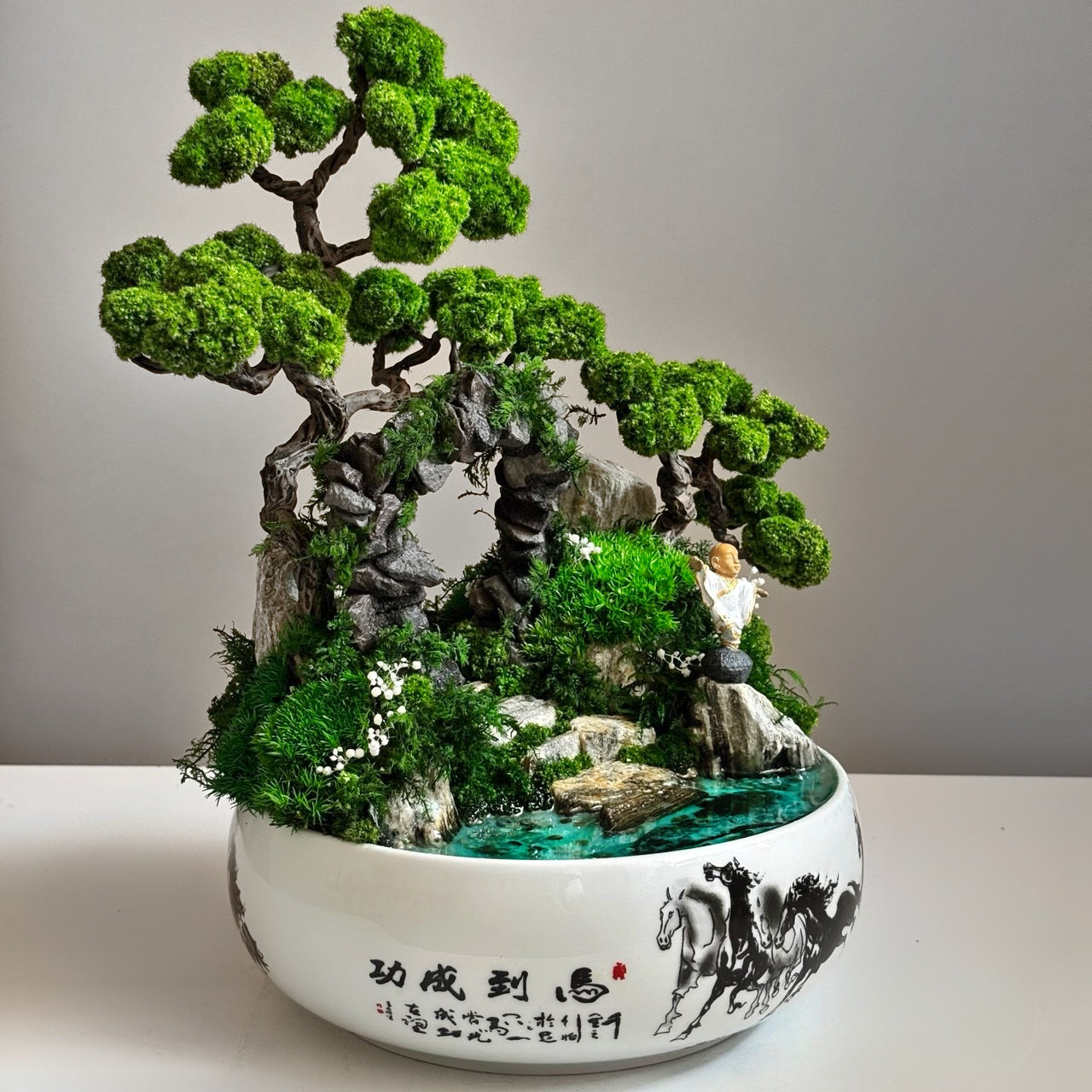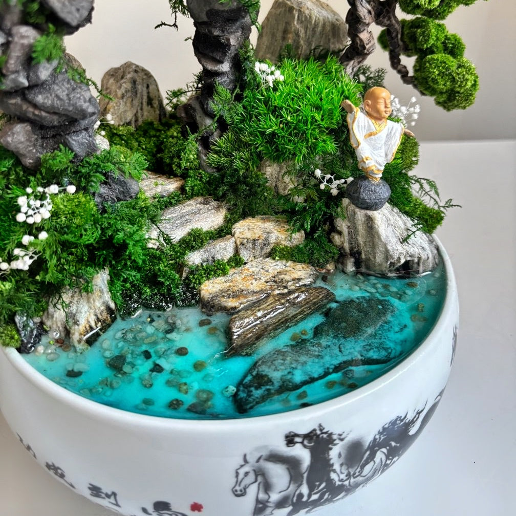 Bonsai with preserved moss & glowing pond Zen Harmony