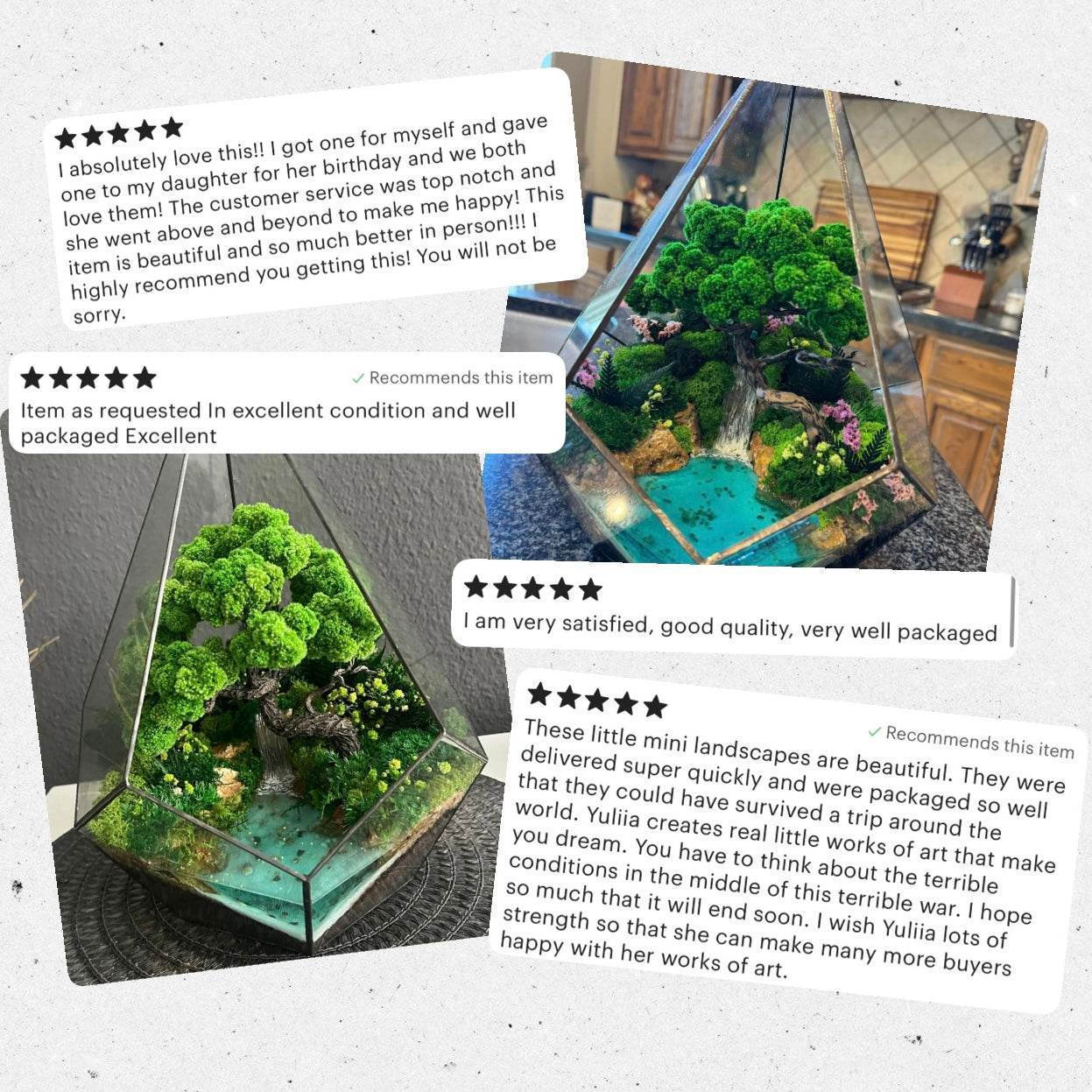 I was especially impressed by Yuliia's willingness to customize a piece for me by incorporating mushrooms into the design! Each piece she creates is one of a kind, and she even sends a photo of the finished composition before shipping to ensure you're happy with it.